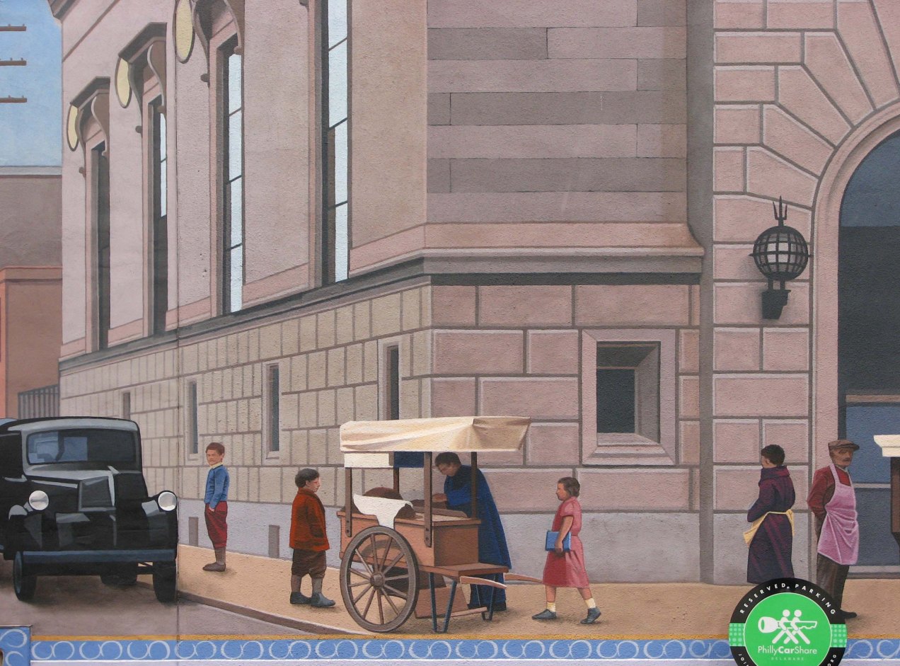 I was commissioned by the Philadelphia Mural Arts Program and the local business community to create a mural that depicting local history and architecture in a style reminiscent of Italian Renaissance architectural paintings.