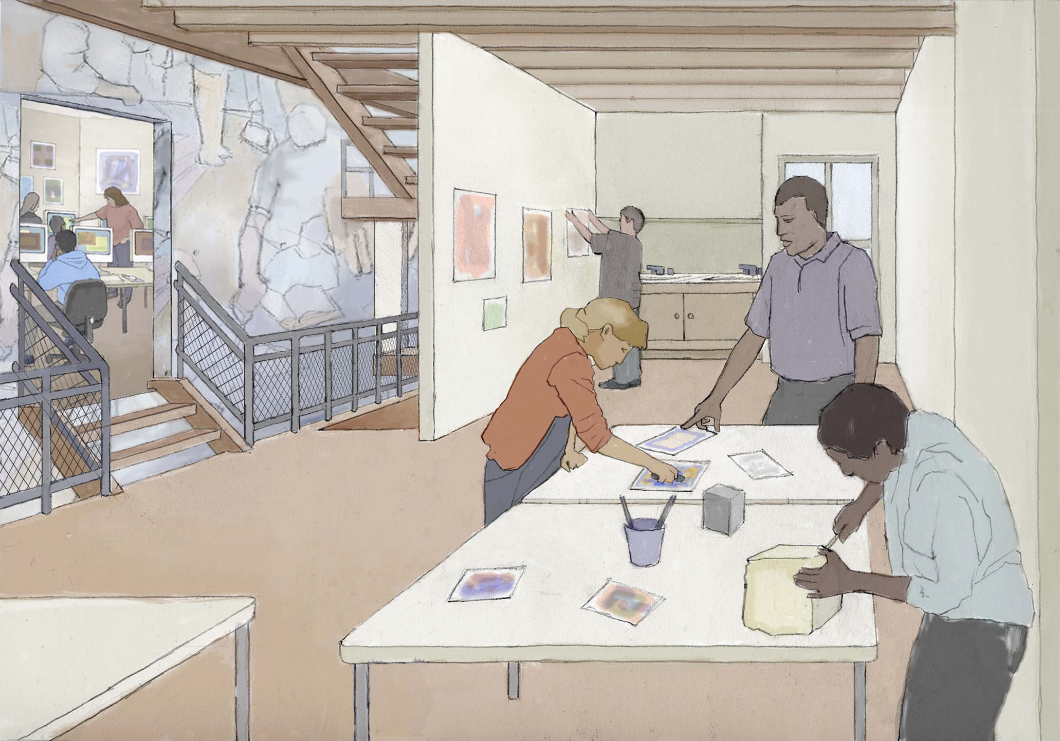 art workshop Illustration for brochure for The Philadelphia Mural Arts Program’s building renovations.