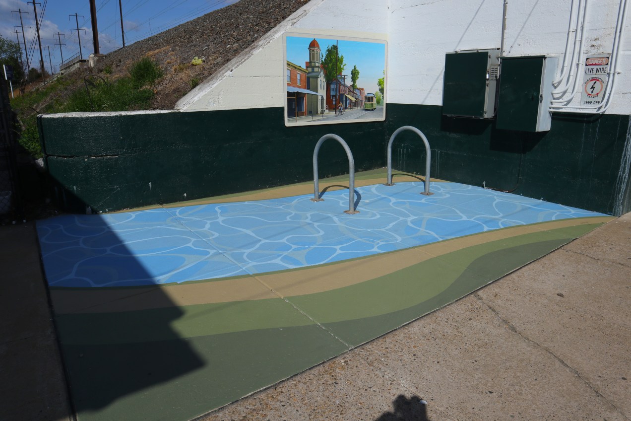 Bike Canal 1 Depiction of the historic Delaware Canal and Old Radcliffe Street. 2025, Acrylic and Acrylic on Pellon cloth, Bristol, PA, varying sizes.