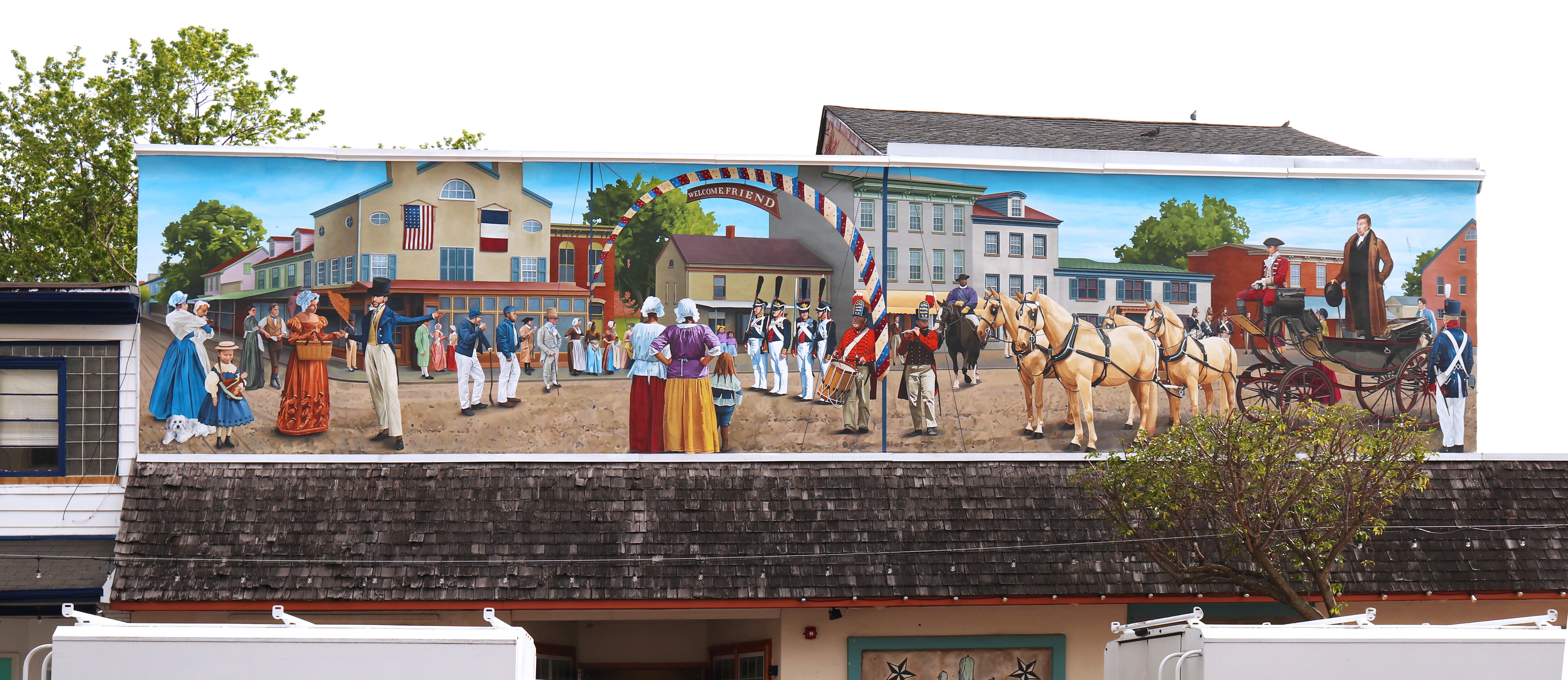 The Marquis de Lafayette Parade Through Bristol, PA 1824 2024, Acrylic on Pellon Cloth, 12′ x 55′, Bristol, PA