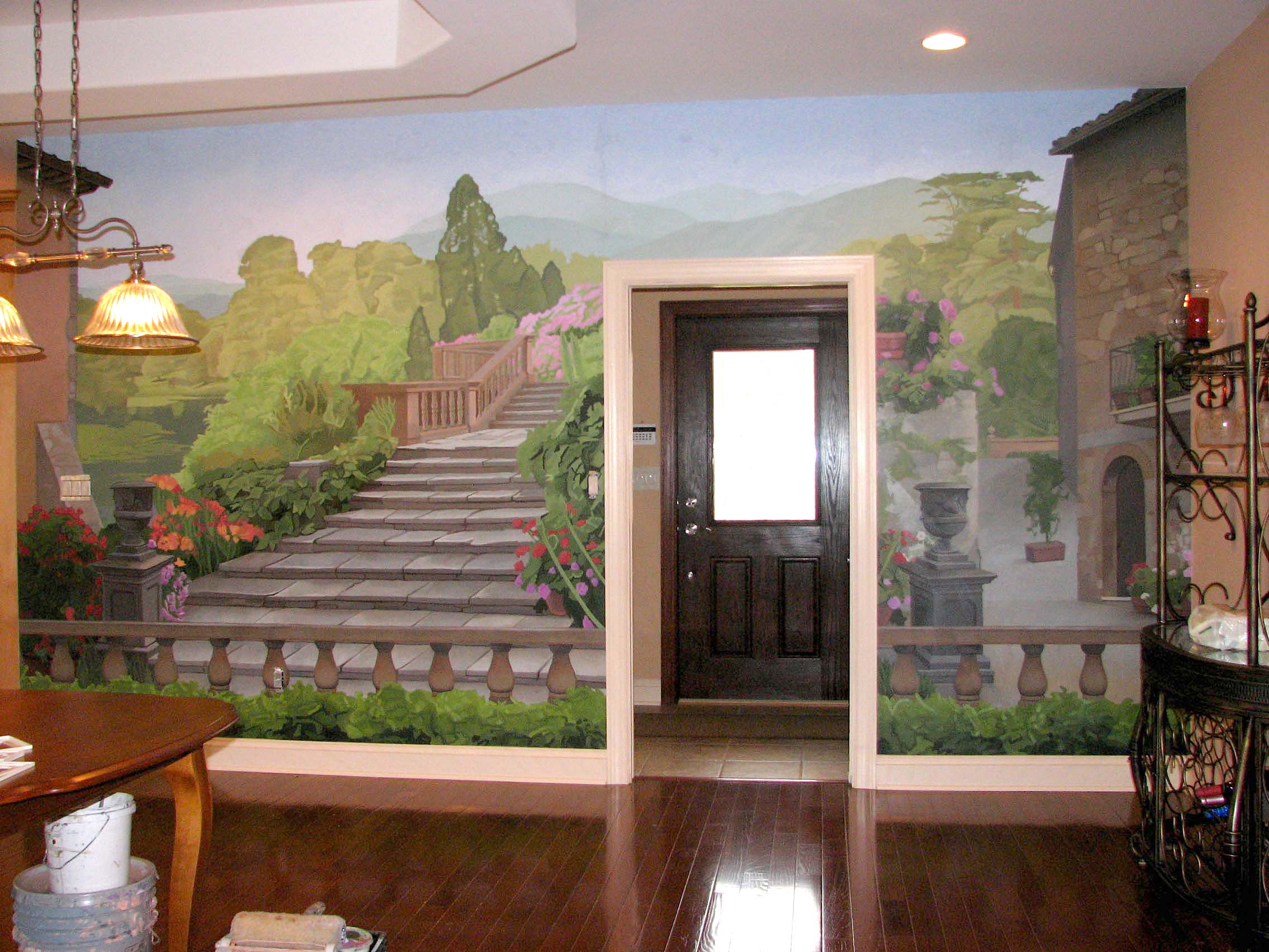 Italian Landscape Mural Mural creating for a private residence dining room. 2010, 8′ x 20′, Acrylic paint in Pellon cloth.